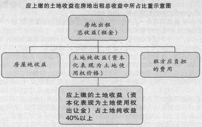 一般情况下,租赁双方签订的合同价款都是房地合一的租赁价格。根据《城镇土地估价规程》中介绍的基本估价方法,房屋租赁合同中的租赁价格属于收益还原法里的总收益。该总收益里既包含土地纯收益,也包含房屋纯收益,还包括出租方应负担的一些费用,例如《规程》中介绍的经营管理费、经营维修费、房屋年折旧费、房屋年保险费、房屋出租年应交税金等费用。在具体计算租金中包含的费用数额时,要根据租赁合同的内容进行判断,一项一项进行剥离,剔除总收益中包含的总费用后,可以得到房屋租赁的房地纯收益。得到房地纯收益后,由房地纯收益减去房屋纯收益就可以得到土地纯收益。     《规程》里具体规定了在房地出租情况下,房屋纯收益、房屋现值的计算方法,本文不再赘述。   计算得到土地纯收益后,是不是就可以把土地纯收益作为应上缴的土地收益呢?不可以,应上缴的土地收益应该是土地纯收益的一部分,而不是全部,二者并不一致。     根据收益还原法的估价原理和马克思的地租资本化理论,土地使用权价格是收益还原法中计算的土地纯收益的资本化表现,而土地使用权出让金才是租金中应上缴的土地收益资本化的一种表现。土地使用权出让金作为是土地使用权价格的一部分,二者是不能等同的。这样理解在《划拨土地使用权管理暂行办法》的规定中可以得到验证。     《办法》第六条规定,符合条件的,经市、县人民政府土地管理部门批准,划拨土地使用权可以出租,其条件之一就是依法律规定签订出让合同,交付出让金或以出租所获收益抵交土地使用权出让金。《办法》第二十六条规定,土地使用权出让金按标定地价的一定比例收取,最低不得低于标定地价的40%。可见,房地出租涉及国有划拨土地使用权时,应上缴的土地收益应该是租金中土地纯收益的一部分,该部分的比例参照《办法》第二十六条规定,应该不低于土地纯收益的40%。     根据以上分析,下面大致计算一下6月24日《地产周刊》刊登的租赁案例应上缴的土地收益情况:     将5年85万元租金作为总收益,如果不考虑预付租金的利息收入,可知年总收益为17万元。分析租赁案例的租赁合同,剥离剔除各种费用,用17万元减去总费用得到房地纯收益。再计算所租赁房屋的现值,用房屋现值乘以建筑物还原利率,得到房屋纯收益。将房地纯收益减去房屋纯收益,得到土地纯收益,再以该土地纯收益乘以不小于40%的比例,即可计算得到应上缴的土地收益。     这是一种方法,此外,还可以直接由地价入手计算应上缴的土地收益:用不小于40%的比例乘以标定地价,得到应交土地使用权出让金数额,用收益还原法公式倒算,可以计算得到应上缴的土地收益。简单一点,可以直接用应交出让金数额乘以土地还原利率,计算结果就是应上缴的土地收益: 该租赁案例所在地段的基准地价为820元/元方米,若以该基准地价作为标定地价,设定出让金占标定地价的比例为40%,该租赁案例所占划拨土地应交出让金为820元/平方米×310平方米×40%=10168元。现在一年期银行贷款利率为7.47%,以此利率为参照,设定土地还原利率为 8%,简单估算一下每年应上缴的土地收益为101618×8%=8129.44元/年。     以上计算方法仅出发点不同,其原理完全一致。在实际计算时,如果取值准确合理,最终计算的应缴土地收益应该基本一致。     现在划拨土地上房屋出租现象十分普遍,正确合理的计算应上缴的土地收益十分重要。若地方政府有收取土地收益(即国家地租)的规定,应从其规定。没有具体规定的,应该根据《办法》的规定或从分析租赁合同入手,计算应上缴的土地收益。若各种计算方法不分主次,应取最高值作为应上缴的土地收益,这样做既符合《办法》中出让金不低于标定地价 40%的规定,也保证了国家收益的取得,增加了国家财政收入。