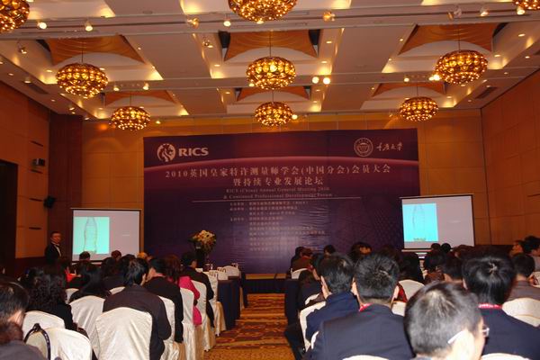 2010年11月20日,全球久负盛名的英国皇家特许测量师学会(RICS)在重庆隆重召开了2010中国分会会员大会暨持续专业发展论坛。来自全国各地近两百名会员及业内人士齐聚盛会,一起探讨中国房地产业及建造行业的发展前景, 共同分享一年来RICS在中国取得的丰硕成果。